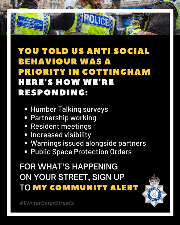Cottingham cops are continuing to build meaningful and effective relationships with local residents and businesses whilst simultaneously collaborating with relevant partners, charities and support agencies to gain further insight into the root cause of ASB in the area. Let's see what the teams have been up to. ![]() | ||