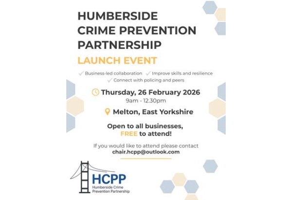 The Humberside Crime Prevention Partnership (HCPP) is launching in under 2 weeks and offers businesses in our area an opportunity to be involved and provide a more joined up approach to crime prevention, safety and protection for businesses by working together.