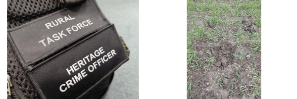 The #RuralTaskForce are trained in assessing these reports and investigating the crime together with our partner agencies including Historic England and North East Lincolnshire Council. What might look like just a hole in a field is actually #CriminalDamage and #Theft. Items found are rarely reported to the local authority as required by the Treasure Act 1996. If you see any suspicious activity in rural areas just prior to or in the hours of darkness please call 101 or 999.